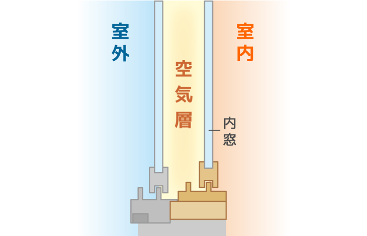 内窓を設置することで、既存の窓と内窓の間に空気の層ができます。